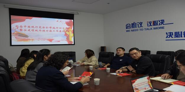 座谈会上,与会人员共同观看了《人民的宪法》宣传视频,交流了对宪法的理解与认识,深化对宪法精神的理解;同时回顾了诉调对接工作从框架设计到结构优化,从确立试点到逐步推广的工程历程,汇报了诉调对接工作开展一年来取得的成效,并就下一步工作提出建议。