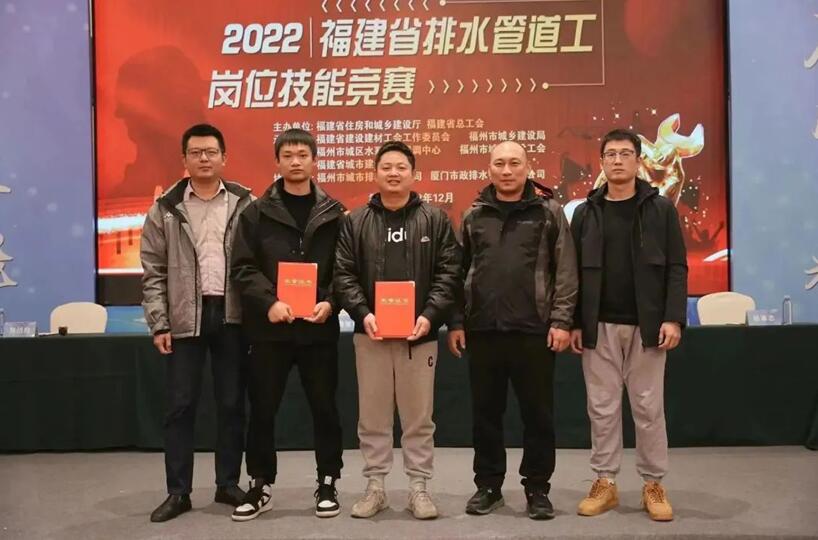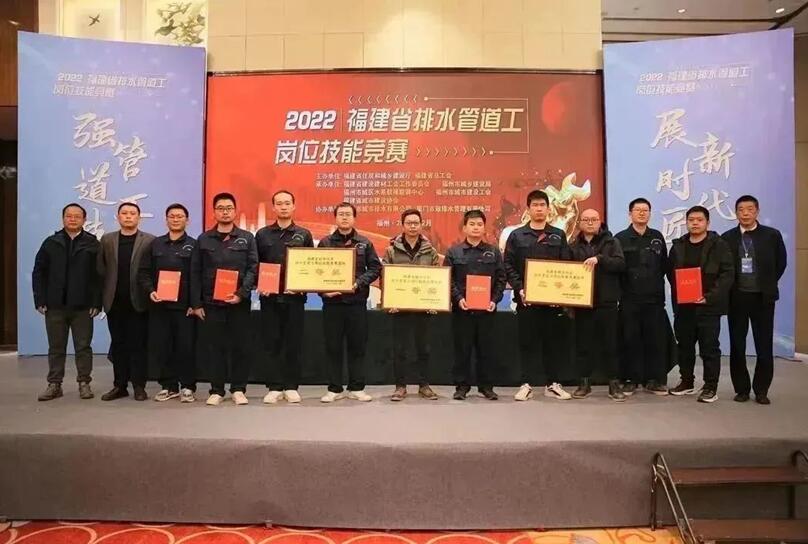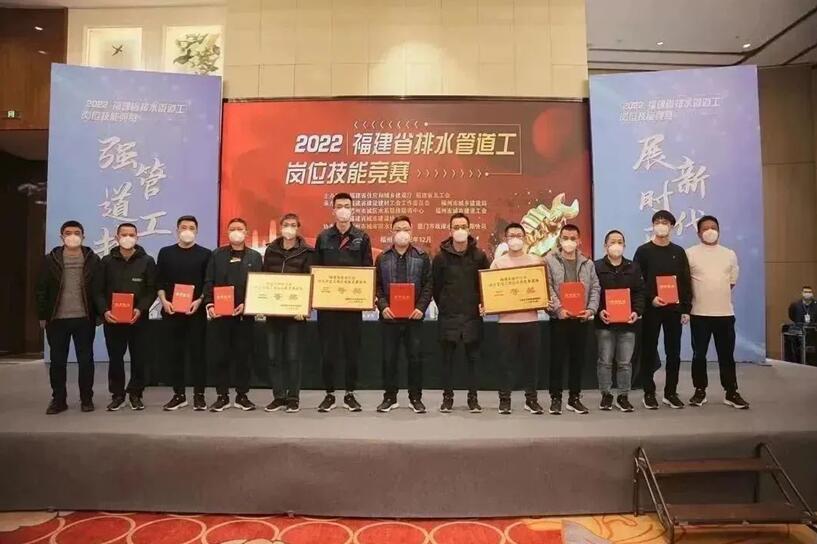 经赛事评委公平、公正、公开评判,分别授予饶银丰等10名选手“福建省排水行业排水管道工技术能手”荣誉称号;授予郑积剑等20名选手“福建省排水行业排水管道工优秀选手”荣誉称号;授予厦门二队(厦门市政排水管理有限公司)等14个代表队“团体一(二、三)等奖”、莆田一队(莆田市水质净化有限公司)等3个代表队“团体优秀组织奖”;授予“福州市城乡建设局”等6个单位“突出贡献奖”。
