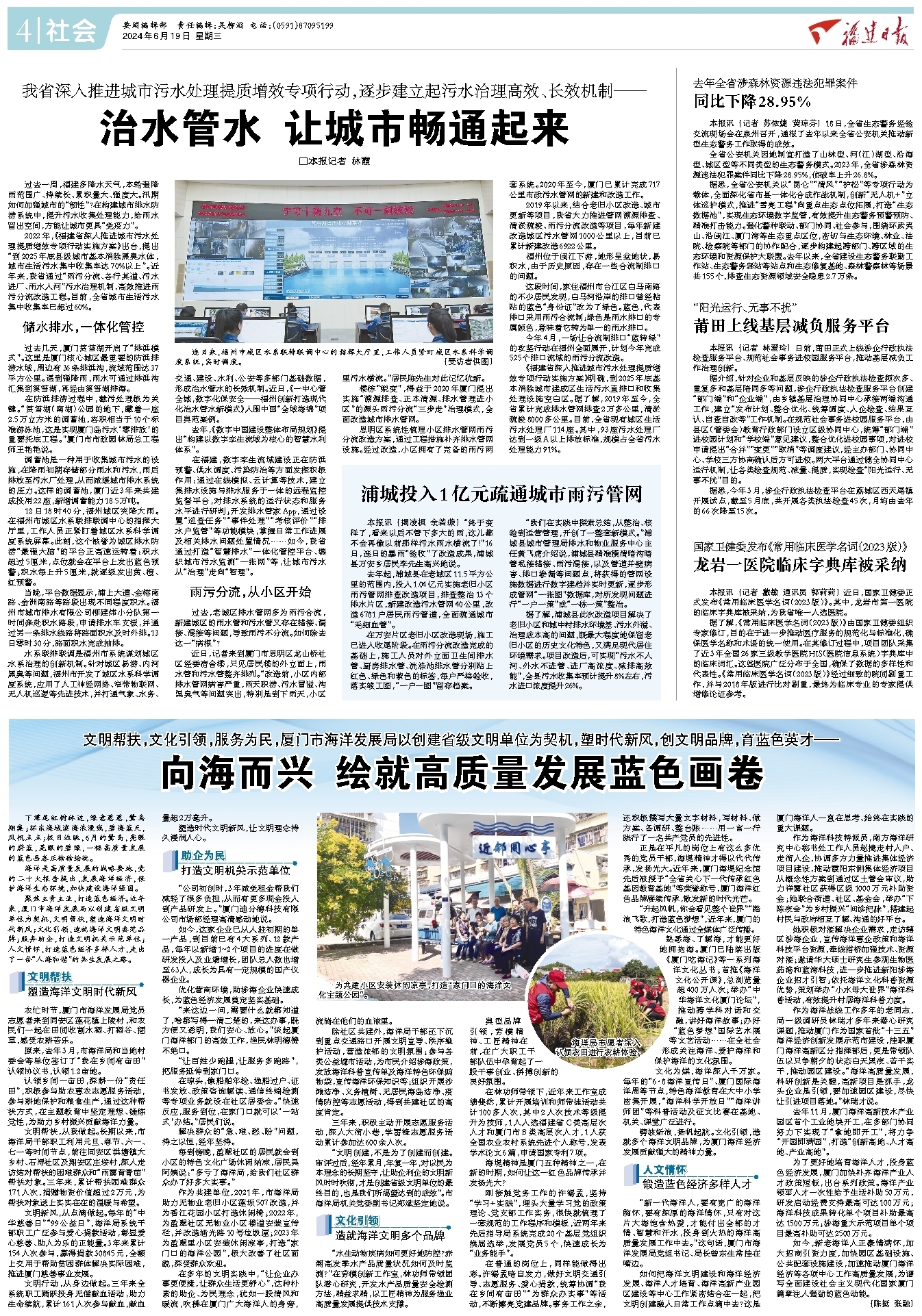2022年,《福建省深入推进城市污水处理提质增效专项行动实施方案》出台,提出“到2025年底县级城市基本消除黑臭水体,城市生活污水集中收集率达70%以上”。近年来,我省通过“雨污分流、各行其道、污水进厂、雨水入河”污水治理机制,高效推进雨污分流改造工程。目前,全省城市生活污水集中收集率已超过60%。