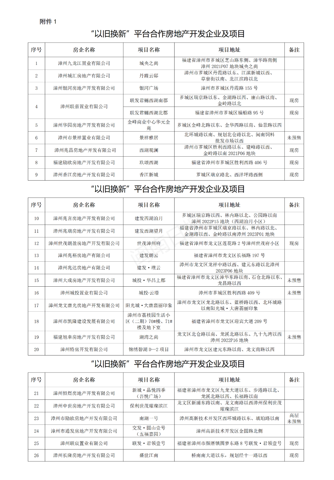 截至5月21日,漳州市区(芗城区、龙文区、高新区)已有26家房企27个在建在售项目逾3000套房源入驻“以旧换新”平台,5月24日起市民可在漳州市房屋租售一体化平台查看房源信息,6月3日起可携相关材料到 “以旧换新”服务窗口现场办理,同时也可通过上述平台进行“以旧换新”线上申请。申请时间为6月3日至12月31日,期间若平台运营主体累计购满1000套“旧房”,则提前终止。