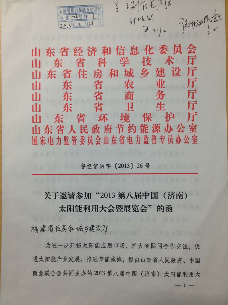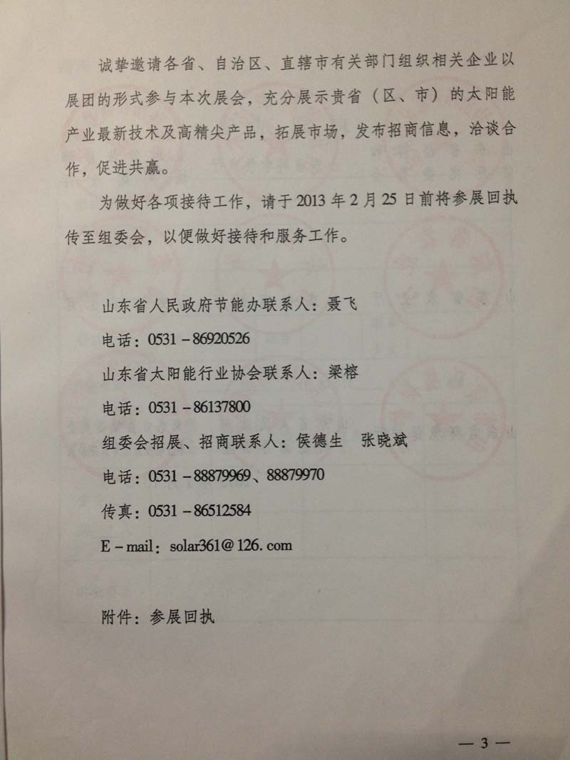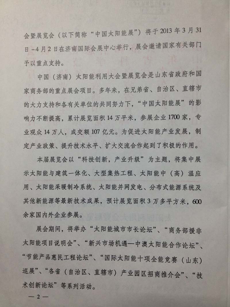 关于邀请参加“2013第八届中国(济南)太阳能利用大会暨展览会”的函