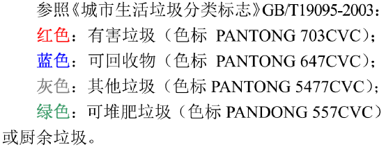 在广场、公园、活动中心等设立分类宣传公共垃圾桶,分为可堆肥垃圾、有害垃圾、可回收物、其他垃圾四类垃圾桶(如图3)。