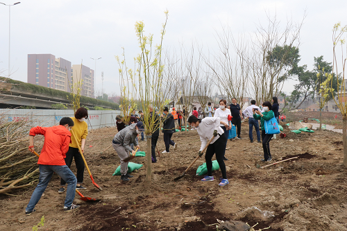 你扶苗我培土,你围垅我浇水,大家团结协作、干劲十足。经过近一个小时的努力,种植小叶紫薇、黄金槐、紫金花等100多株,一棵棵新栽苗木昂然挺立,在明媚的春光中展现出勃勃生机,为初春的福州增添了新的绿意。